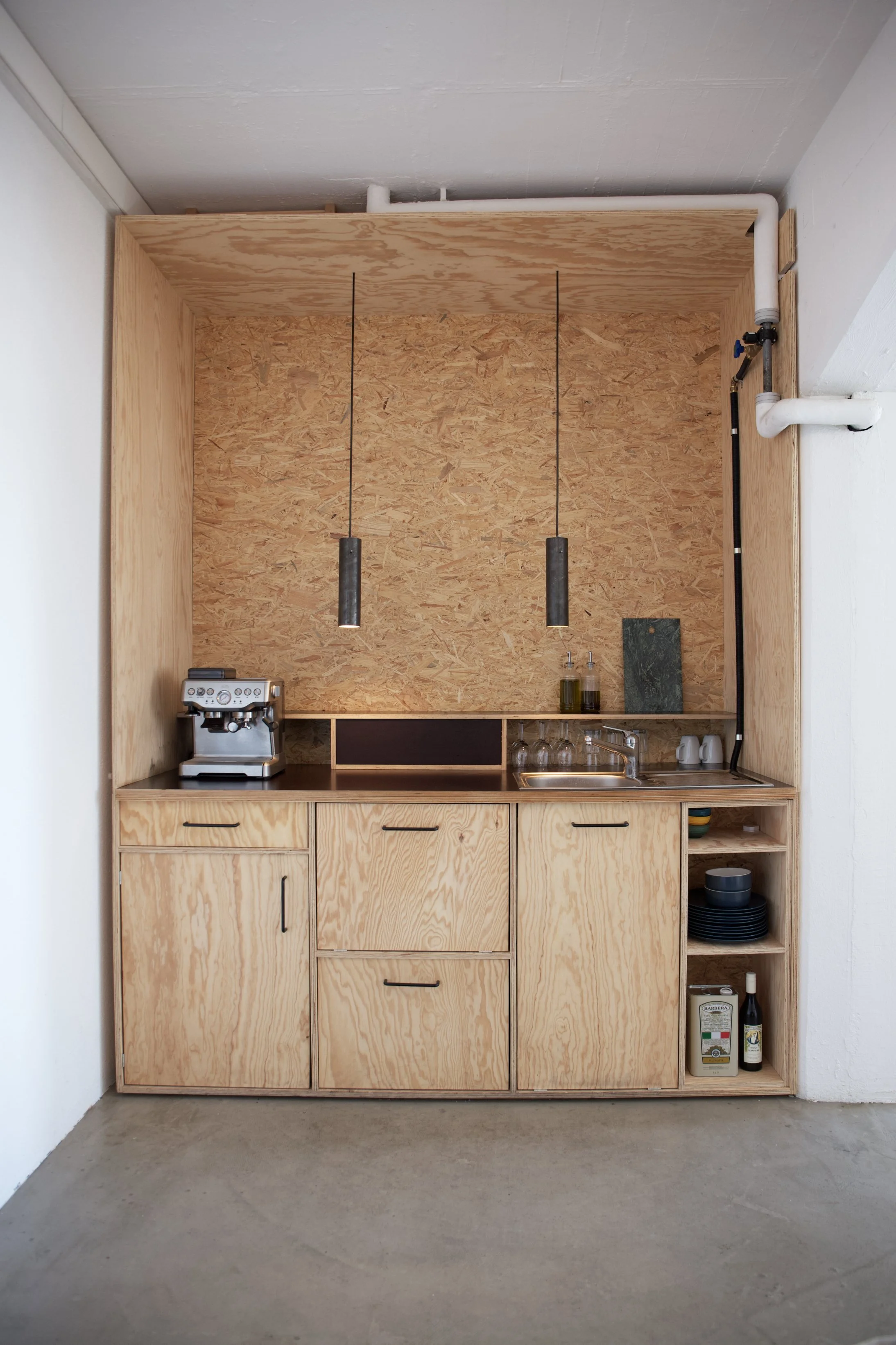En cherchant un nouvel espace où établir le bureau, nous avons voulu créer un espace de collaboration et d’échange. L’idée d’un espace de co-working correspondait bien à nos valeurs de mutualisation des besoins et d’échange d’idées. Le local de la Badenerstrasse 816 se prêtait à cet usage, avec sa grande surface lumineuse et ses matériaux bruts. Nous avons complété, en auto-construction, cette base avec une cuisine, une petite salle de conférence et un atelier maquette.